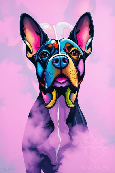Infuse your space with unparalleled energy and artistic charm with the ‘Vibrant French Bulldog Portrait – Colorful Pop Art AI Illustration’ from Paws Pixel Art. This unique digital artwork features a beloved French Bulldog, reimagined in a bold and expressive pop art style. The dog’s distinctive features are brought to life with a dazzling palette of electric blues, vibrant pinks, sunny yellows, and warm oranges, all set against a soft, hazy pink background with dreamy light effects. The expressive, painterly strokes create a lively and captivating piece that celebrates the spirited personality of this popular breed.